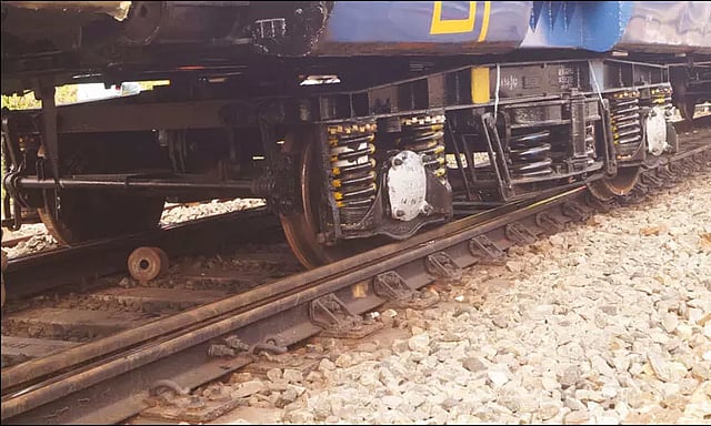 அந்த ரெயில் தமிழ்நாடு சிறப்பு காவல் படை எதிர்புரத்தில் உள்ள ரெயில்வே தண்டவாள வழித்தடத்தில் வந்து கொண்டிருந்தது. அப்போது, அந்த பயணிகள் ரெயிலில் இருந்த 3-வது மற்றும் 6-வது பெட்டிகள் திடீரென்று தடம் புரண்டன. அந்த ரெயிலில் பயணிகள் யாரும் இல்லாததால் பெரும் விபத்து தவிர்க்கப்பட்டது.
