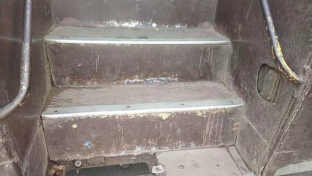 அந்த பஸ் உண்ணாமலைகடையில் சென்ற போது அவர் இறங்க வேண்டிய இடத்தில் நிறுத்தப்பட்டது. உடனே பால்சிங் பின்பக்க படிக்கட்டு வழியாக பொருட்களுடன் இறங்கிக்காண்டிருந்தார். அப்போது எதிர்பாராத விதமாக படிக்கட்டு உடைந்து விழுந்தது. இதில் பால்சிங் கீழே விழுந்து காலில் பலத்த அடிபட்டு படுகாயம் அடைந்தார். இதனால் வலி தாங்க முடியாமல் அலறினார்.