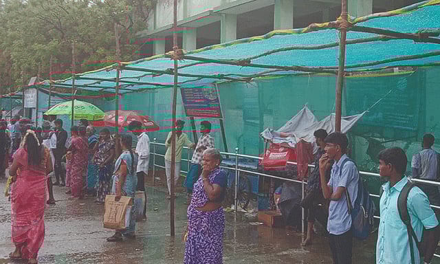 அதேநேரத்தில் வலைபோல உள்ள இந்த பந்தலில் நேற்று மழை பெய்த போது அதில் இருந்து தண்ணீர் வடிந்தது. இதனால் பொதுமக்கள் நிழற்பந்தலை பயன்படுத்த முடியவில்லை. மேலும் வெயில் அடிக்கும் போது வெயிலின் தாக்கம் சற்று அதில் இருந்தது. இதனால் அந்த வலைக்கு பதிலாக மேற்கூரை போன்று ஷெட்கள் அமைக்க மாநகராட்சி நிவாகம் நடவடிக்கை எடுக்க வேண்டும் என பயணிகள் கோரிக்கை விடுத்துள்ளனர்.