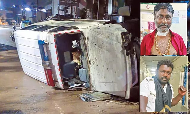 அதிகாலை 2.45 மணியளவில் திருமுல்லைவாயல் கல்லறை நிறுத்தம் அருகே சென்றபோது சாலையின் குறுக்கே கிடந்த ஒரு மரக்கட்டை மீது போலீஸ் ஜீப் ஏறியது. இதில் கட்டுப்பாட்டை இழந்த போலீஸ் ஜீப் சாலையோரம் கவிழ்ந்தது.