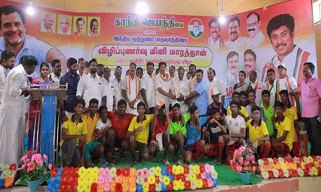 களக்காடு புதிய பஸ் நிலையம் அருகில் இருந்து தாடங்கிய போட்டியானது களக்காடு அண்ணாசிலை, படலையார்குளம், நாகன்குளம், சேரன்மாதேவி ரோடு வழியாக மீண்டும் அண்ணா சிலையை வந்தடைந்தது. 5 கிலோ மீட்டர் தூரத்திற்கு போட்டி நடந்தது. இதில் வெற்றி பெற்றவர்களுக்கு பரிசளிப்பு விழா நடந்தது. அகில இந்திய காங்கிரஸ் கட்சியின் பொது செயலாளரும், கிருஷ்ணகிரி தொகுதி எம்.பி.யுமான செல்லக்குமார் கலந்துகொண்டு, வெற்றி பெற்றவர்களுக்கு பரிசுகள் வழங்கினார்.
