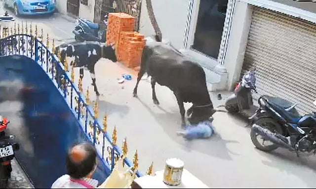 அவர்கள் கல்லால் அடித்தும் அதை கண்டுகொள்ளாமல் தொடர்ந்து சிறுமியை தனது முகத்தால் அழுத்தி எழுந்திருக்க விடாமல் அந்த மாடு மீண்டும் மீண்டும் குத்த முயன்றது. மேலும் தன் மீது கல் வீசியவர்களை முட்டுவதுபோல் வந்து அங்கிருந்து விரட்டியதுடன், மாணவியை அங்கிருந்த இழுத்து காப்பாற்ற முயன்றவரையும் முட்டுவதுபோல் விரட்டியடித்து விட்டு மீண்டும் மாணவியை தரையோடு தரையாக முகத்தால் அழுத்தியது.