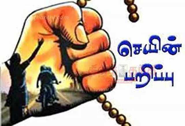 அப்போது அங்கு வந்த 2 மர்ம நபர்கள் தூங்கிக் கொண்டிருந்த கலைவாணியை தாக்கி அவர் கழுத்தில் அணிந்திருந்த 8 பவுன் தங்க சங்கிலியை பறித்து கொண்டு தப்பி ஓடிவிட்டனர்.