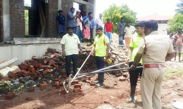 வேடசந்தூர் அருகே உள்ள குன்னம்பட்டியை சேர்ந்தவர் மாசி (வயது 40). இவர் தி.மு.க. தெற்கு ஒன்றிய பொருளாளராக உள்ளார். இவர் சேனன்கோட்டை அருகே உள்ள மகாத்மாகாந்தி நகரில் புதிதாக வணிக வளாக கட்டிடம் கட்டி வருகிறார். நேற்று கட்டிட வேலையில் தொழிலாளர்கள் ஈடுபட்டிருந்தனர்.