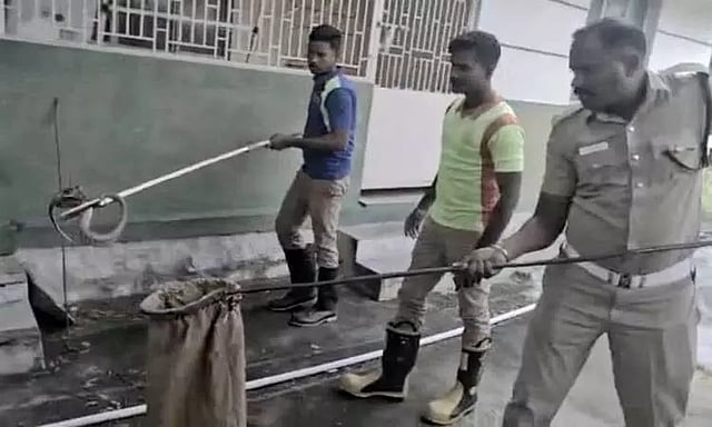 திண்டிவனம் போலீஸ் நிலையத்தில் சப்-இன்ஸ்பெக்டராக பணிபுரிந்து வருபவர் தமிழ்மணி. இவர் போலீஸ் நிலையம் அருகே போலீஸ் குடியிருப்பில் உள்ள ஒரு வீட்டில் குடும்பத்துடன் வசித்து வருகிறார். சம்பவத்தன்று இவருடைய வீட்டுக்குள் 4 அடி நீளமுள்ள நல்ல பாம்பு ஒன்று புகுந்தது. இதைபார்த்து அதிர்ச்சியடைந்த வீட்டில் இருந்தவர்கள் அலறியடித்தபடி வெளியே ஓடி வந்ததுடன், இதுபற்றி திண்டிவனம் தீயணைப்பு நிலையத்துக்கு தகவல் தெரிவித்தனர். அதன்பேரில் தீயணைப்பு நிலைய அலுவலர் கதிர்வேல் தலைமையிலான வீரர்கள் சம்பவ இடத்துக்கு விரைந்து வந்து வீட்டுக்குள் புகுந்த பாம்பை லாவகமாக பிடித்து, தொலைவில் உள்ள வனப்பகுதியில் கொண்டு விட்டனர். இந்த சம்பவத்தால் போலீஸ் குடியிருப்பில் சிறிது நேரம் பரபரப்பு ஏற்பட்டது.