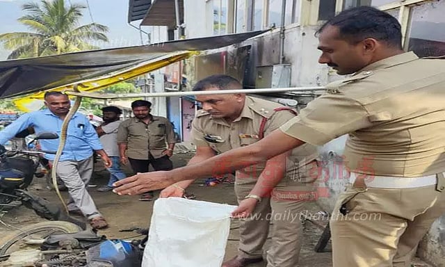 கூடலூர் செவிடிப்பேட்டை பகுதியில் நிறுத்தி வைத்திருந்த மோட்டார் சைக்கிளில் பாம்பு பதுங்கி இருப்பதை அப்பகுதி மக்கள் கண்டனர். மேலும் மோட்டார் சைக்கிளை சம்பந்தப்பட்ட உரிமையாளர் ஓட்டிச் செல்ல முடியாத நிலை ஏற்பட்டது. இதுகுறித்து தகவல் அறிந்த கூடலூர் தீயணைப்பு நிலைய அலுவலர் மார்ட்டீன் தலைமையிலான தீயணைப்பு வீரர்கள் விரைந்து வந்து மோட்டார் சைக்கிளில் பதுங்கி இருந்த 4 அடி நீளமுள்ள பாம்பை பிடித்தனர். பின்னர் அடர்ந்த வனப்பகுதியில் கொண்டு பாம்பை தீயணைப்பு துறையினர் விட்டனர். அதன் பின்னரே பொதுமக்கள் நிம்மதி அடைந்தனர்.