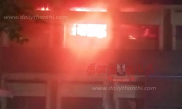 மதுரை ரெயில் நிலையம் அருகே உள்ள வங்கி ஒன்றில் நேற்று நள்ளிரவில் திடீரென்று தீ விபத்து ஏற்பட்டது. இந்த தீ கொழுந்து விட்டு எரிந்ததை படத்தில் காணலாம். தகவல் அறிந்ததும் தீயணைப்புத்துறையினர் விரைந்து சென்று தீயை அணைக்கும் பணியில் ஈடுபட்டனர்.