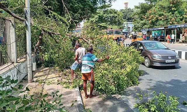 இருப்பினும் நடைபாதையில் செல்ல முடியாமல் அவ்வழியே சென்ற பொதுமக்கள் சாலையில் இறங்கி நடந்து சென்றனர். அதேபோல் முறிந்து விழுந்த மரத்தின் பாதி கிளை, டேம்ஸ் சாலையின் ஒரு பகுதியை ஆக்கிரமித்து இருந்ததால் அந்த வழியே சென்டிரல், சிந்தாதிரிபேட்டை மற்றும் எழும்பூரை நோக்கி சென்ற வாகனங்களுக்கு இடையூறாக அமைந்தது. இதையடுத்து வளாகத்தின் ஊழியர்களே விரைந்து செயல்பட்டு நடைபாதையில் விழுந்து கிடந்த மரத்தை உடனடியாக வெட்டி அகற்றினர்.