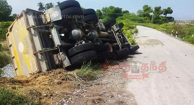 இந்த நிலையில் நேற்று வாலாஜா பகுதியிலிருந்து லாரி ஒன்று ஜல்லி ஏற்றிக்கொண்டு வந்து கொண்டிருந்தது. மகேந்திரவாடி பகுதியில் உள்ள மதகு காத்த அம்மன் கோவில் அருகே வந்த டிரைவரின் கட்டுப்பாட்டை இழந்த லாரி சாலையோரத்தில் திடீரென்று கவிழ்ந்து விபத்துக்குள்ளானது.