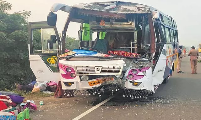 செங்கல்பட்டு மாவட்டம் மேல்மருவத்தூர் கோவிலில் இருந்து நேற்று காலை கும்மிடிப்பூண்டி நோக்கி 20 பக்தர்களுடன் ஒரு வேன் சென்று கொண்டிருந்தது. வண்டலூர் வெளிவட்ட சாலை அருகே செல்லும்போது திடீரென சாலையோரமாக நின்று கொண்டிருந்த லாரி மீது வேன் பயங்கரமாக மோதியது. இதில் வேனின் முன் பக்கம் அப்பளம் போல் நொறுங்கியது.