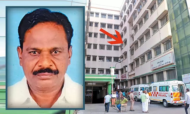திருநாவுக்கரசு, நேற்று மதியம் 12 மணியளவில் பணி முடிந்து வீட்டுக்கு புறப்பட்டார். அப்போது ஆஸ்பத்திரியின் புதிய கட்டிடம் 2-ல் உள்ள 3-வது மாடியில் இருந்த ஏ.சி.எந்திரம் திடீரென கழன்று கீழே நடந்து சென்ற திருநாவுக்கரசு மீது பலத்த சத்தத்துடன் விழுந்தது.
