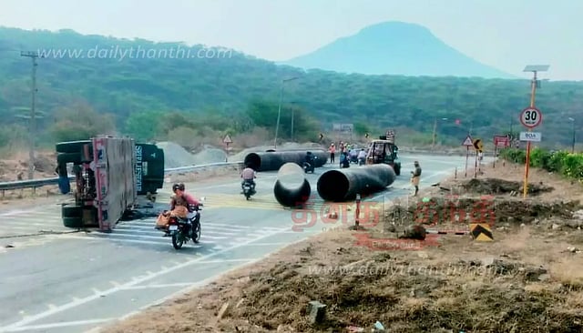 சாலையில் கவிழ்ந்தது