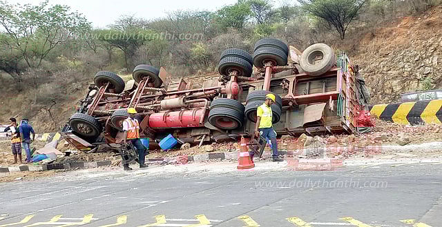 இதையடுத்து வெங்காய பார லாரி சென்டர் மீடியனில் மோதி கவிழ்ந்து விபத்துக்குள்ளானது. மேலும் கட்டுப்பாட்டை இழந்த சரக்கு வேனும், கார் ஒன்றின் பின் பகுதியில் மோதிவிட்டு சாலையில் கவிழ்ந்து விபத்துக்குள்ளானது. இந்த விபத்தில் வெங்காய பார லாரி டிரைவர் சக்தி மற்றும் சரக்கு வேன் டிரைவர் படுகாயம் அடைந்து தவித்தனர்.