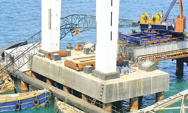 ராமநாதபுரம் மாவட்டம் பாம்பன் கடலின் நடுவே ரூ.550 கோடியில் புதிதாக ரெயில் பாலம் கட்டும் பணியானது நடைபெற்று வருகிறது. இந்த பாலத்தின் மையப்பகுதியில் தூக்குப்பாலம் அமைப்பதற்கான பணிகளும் நடைபெற்று வருகின்றன. இதற்கு தேவையான தளவாட பொருட்கள் படகுகளில் ஏற்றிச் சென்று கொடுக்கப்பட்டு வருகிறது.
