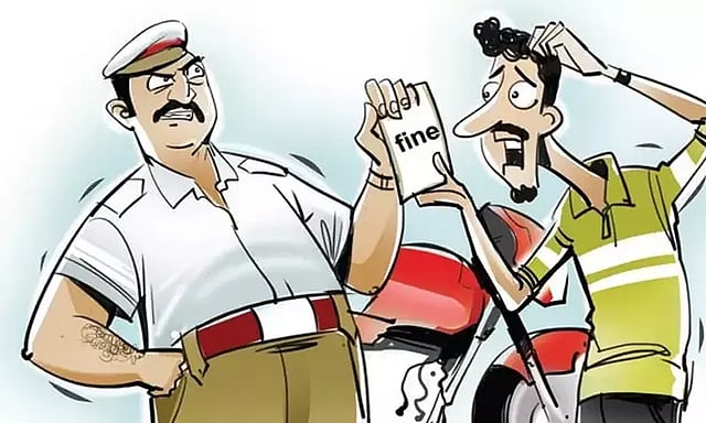 சென்னை - திருச்சி தேசிய நெடுஞ்சாலையில் பெரம்பலூர் மாவட்டம் பாடலூர் போலீஸ் நிலைய எல்லைக்கு உட்பட்ட ஆலத்தூர் பகுதியில் கடந்த 16-ந் தேதி வந்தபோது போக்குவரத்து போலீஸ் இன்ஸ்பெக்டர் சுப்பையன் வாகனத்தை நிறுத்தி ஆவணங்களை சோதனை செய்தார். ஆவணங்கள் அனைத்தும் சரியாக இருந்த நிலையில், ரூ.100 லஞ்சமாக கேட்டு உள்ளார். வாகன உரிமையாளர் ரூ.50 கொடுத்து உள்ளார். அதற்கு ஒப்புகொள்ளாத போலீஸ்காரர் வேண்டும் என்றே ரூ.2,500 ஆன்லைன் மூலம் அபராதம் விதித்து உள்ளார்.