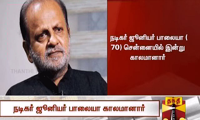 மறைந்த மூத்த நடிகர் டி.எஸ்.பாலையாவின் மகன் ஜூனியர் பாலையா (70) உடல்நலக்குறைவு காரணமாக சென்னையில் உள்ள இல்லத்தில் காலமானார். கரகாட்டக்காரன், கோபுர வாசலிலே, சுந்தரகாண்டம், சாட்டை உள்ளிட்ட நூற்றுக்கும் மேற்பட்ட படங்களில் நடித்தவர் ஜூனியர் பாலையா.