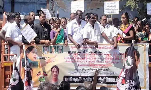 சொத்துவரி, பால் விலை, மின்கட்டண உயர்வை கண்டித்தும், தி.மு.க. அரசை கண்டித்தும் அ.தி.மு.க. சார்பில் சங்கரன்கோவில் தேரடி திடலில் ஆர்ப்பாட்டம் நடந்தது. முன்னாள் அமைச்சர் ராஜலட்சுமி தலைமை தாங்கினார். அ.தி.மு.க. நகர செயலாளர் ஆறுமுகம், ஒன்றிய செயலாளர்கள் ரமேஷ், சுப்பையா பாண்டியன், வேல்முருகன், வாசுதேவன், செல்வராஜ் ஆகியோர் முன்னிலை வகித்தனர். தகவல் தொழில்நுட்ப அணி மதுரை மண்டல இணைச் செயலாளர் சிவானந்த், டாக்டர் திலீபன். மாவட்ட விவசாய அணி செயலாளர் பரமகுருநாதன், தலைமைக்கழக பேச்சாளர் ராமசுப்பிரமணியன், மோகன் உள்ளிட்ட பலர் கண்டன உரையாற்றினார்கள். ஆர்ப்பாட்டத்தில் நகராட்சி கவுன்சிலர்கள் சங்கர சுப்பிரமணியன், அண்ணாமலை புஷ்பம், ராஜேஸ்வரி கந்தன், மாவட்ட மாணவரணி துணை செயலாளர் மாரியப்பன், நகர பாசறை செயலாளர் நிவாஸ், தகவல் தொழில்நுட்ப அணி செந்தில்குமார், ராஜ்குமார், முருகன் உள்பட திரளானவர்கள் கலந்து கொண்டனர், முடிவில் நகர பேரவை செயலாளர் சவுந்தர் நன்றி கூறினார்.