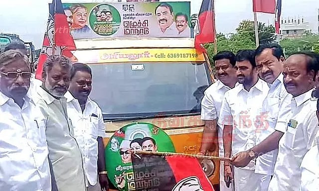 அ.தி.மு.க. மாநில மாநாடு நாளை(ஞாயிற்றுக்கிழமை) மதுரையில் நடைபெறுகிறது. இதையொட்டி இந்த மாநாட்டிற்கு அனைவரையும் அழைக்கும் பிரசார வாகனத்தை அரியலூரில் மாவட்ட அ.தி.மு.க. செயலாளர் தாமரை ராஜேந்திரன் கொடியசைத்து தொடங்கி வைத்தார். மேலும் அவர் பேசுகையில், மாநாட்டிற்கு தொண்டர் படை குழுவின் பொறுப்பாளராக என்னை நியமித்துள்ளார்கள். வீர வரலாற்றின் பொன் விழா எழுச்சி மாநாடு நடைபெறும் மதுரை மாநகருக்கு லட்சக்கணக்கான அ.தி.மு.க. தொண்டர்கள் தமிழகம் முழுவதும் இருந்து வர உள்ளனர். அனைவருக்கும் தங்குவதற்கு இடமும், உணவு மற்றும் குடிநீர் வசதிகளும் செய்யப்பட்டுள்ளது. தொண்டர்கள் எந்த தயக்கமும் இல்லாமல் மாநாட்டிற்கு குடும்பத்துடன் வர வேண்டும், என்று கேட்டுக்கொண்டார்.