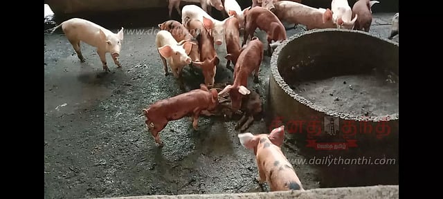 நாமக்கல் மாவட்டம் ராசிபுரம் அருகே உள்ள கல்லாங்குளம் கிராமத்தைச் சேர்ந்தவர் ராஜாமணி. இவர் சில ஆண்டுகளாக வெண் பன்றி பண்ணை நடத்தி வருகிறார். இங்கு வளர்க்கப்படும் வெண் பன்றிகளை கேரளா போன்ற மாநிலங்களுக்கு அனுப்பி வைத்து வந்ததாக கூறப்படுகிறது.