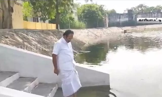 கடந்த சில நாட்களுக்கு முன்பு பெய்த மழை காரணமாக, சுமார் 30 ஆண்டுகளுக்கு பிறகு சின்னக்குளம் ஊரணி முழுமையாக நிரம்பியுள்ளது. இந்த நிலையில் தனது சொந்த ஊருக்கு சென்றிருந்த அமைச்சர் தங்கம் தென்னரசு, பல ஆண்டுகளுக்கு பிறகு நிரம்பிய ஊரணியை நேரில் பார்வையிட்டு, தண்ணீரில் இறங்கி மகிழ்ச்சி அடைந்தார்.