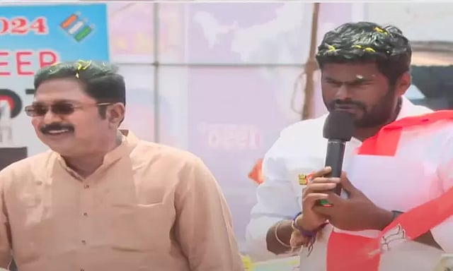 பா.ஜனதா தலைமையிலான தேசிய ஜனநாயக கூட்டணியில் டி.டி.வி. தினகரனின் அம்மா மக்கள் முன்னேற்ற கழகத்திற்கு இரண்டு தொகுதிகள் ஒதுக்கப்பட்டுள்ளன. இதில், தேனி தொகுதியில் டி.டி.வி. தினகரனே போட்டியிடுகிறார். தேனி தொகுதியில் போட்டியிடும் டி.டி.வி. தினகரன் தீவிர பிரசாரத்தில் ஈடுபட்டு வருகிறார். இந்த நிலையில், டி.டி.வி. தினகரனுக்கு ஆதரவாக தமிழக பா.ஜ.க. தலைவர் அண்ணாமலை பிரசாரம் மேற்கொண்டார். அப்போது அண்ணாமலை பேசியதாவது:-