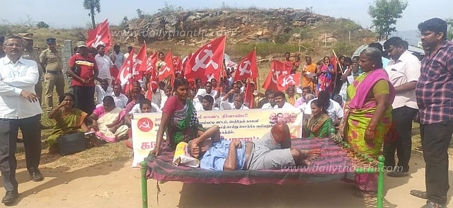 இந்த போராட்டத்துக்கு மார்க்சிஸ்ட் கம்யூனிஸ்டு கட்சி தாலுகா செயலாளர் ஈஸ்வரன் தலைமை தாங்கினார். மாவட்ட செயலாளர் சண்முகராஜா, தமிழ்நாடு தீண்டாமை ஒழிப்பு முன்னணி மாவட்ட தலைவர் குழந்தைவேல், மாவட்ட செயலாளர் இளங்கோ, பால் உற்பத்தியாளர் சங்க மாவட்ட செயலாளர் அரியா கவுண்டர், விடுதலை சிறுத்தைகள் கட்சி ஒன்றிய செயலாளர் வேல்பாண்டியன் உள்பட பலர் கலந்து கொண்டனர்.