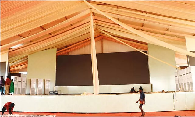 வேளாண் கண்காட்சி மற்றும் கருத்தரங்கை முன்னிட்டு விஜயமங்கலம் சுங்கச்சாவடி அருகே பிரமாண்ட பந்தல்கள் அமைக்கப்பட்டுள்ளன. தொடக்க விழா நிகழ்ச்சிகள் நடைபெறும் பந்தலில் 10 ஆயிரத்துக்கும் மேற்பட்ட விவசாயிகள் அமரும் வகையில் பந்தல் அமைக்கப்பட்டுள்ளது.அதைத்தொடர்ந்து அரசுத்துறை அரங்குகள் அமைக்கும் பந்தல், தனியார் அரங்குகள் அமைக்கும் பந்தல், வேளாண் எந்திர தளவாடங்களுக்கான அரங்கம் மற்றும் உணவுக்கூடம் ஆகியன அமைக்கப்பட்டுள்ளது. மலர் கண்காட்சி அரங்கு, கரும்பு அரங்கு ஆகியவை அனைவரையும் கவரும் வகையில் அமைக்கப்பட்டுள்ளன.