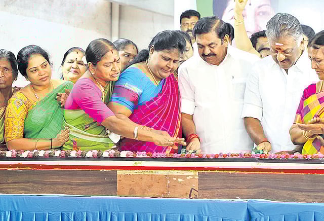 சென்னை ராயப்பேட்டையில் உள்ள அ.தி.மு.க. தலைமை அலுவலகத்தில் ஓ.பன்னீர்செல்வம், எடப்பாடி பழனிசாமி ஆகியோர் கேக் வெட்டி சர்வதேச மகளிர் தினத்தை கொண்டாடினர்.