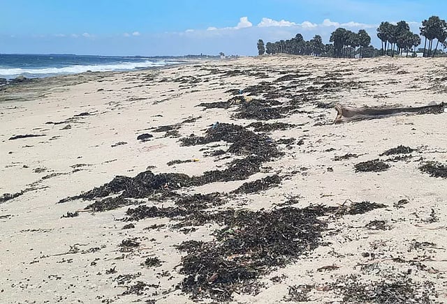 இதில் பாசிகளோடு தாழை செடிகளும் கரை ஒதுங்கி கிடக்கின்றன. கடலுக்குள் வளர்ந்து நிற்கும் ஒரு சில பாசி மற்றும் இயற்கை தாவரங்களை நம்பித்தான் கடல் பசு உள்ளிட்ட பலவகை அரிய வகை கடல்வாழ் உயிரினங்களும் வாழ்ந்து வருகின்றன என்பது குறிப்பிடத்தக்கது.