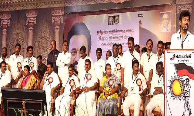 முன்னதாக மாவட்ட செயலாளர்கள் கீதாஜீவன் (வடக்கு), அனிதா ராதாகிருஷ்ணன் (தெற்கு) ஆகியோர் அமைச்சர் உதயநிதி ஸ்டாலினுக்கு வெள்ளி செங்கோல் வழங்கினர்.