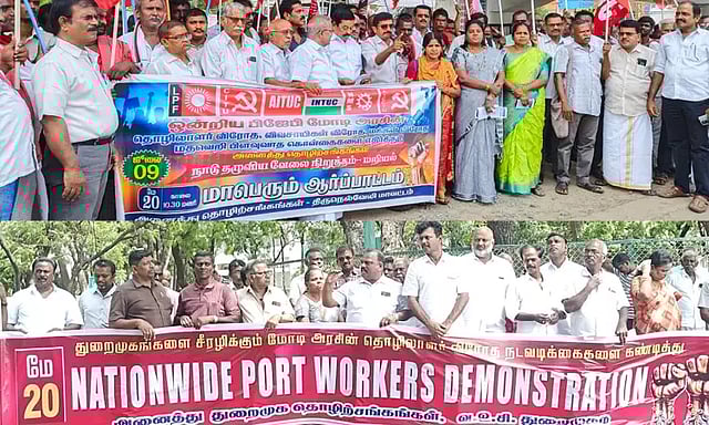 தூத்துக்குடி வ.உ.சி. துறைமுகத்தில் வேலைநிறுத்த நோட்டீஸ் அளித்திருந்த 8 தொழிற்சங்கங்களான துறைமுக ஜனநாயக ஊழியர் சங்கம் சி.ஐ.டி.யு., போர்ட் மெரைனர்ஸ் அன்ட் ஜெனரல் ஸ்டாப் யூனியன் ஹெச்.எம்.எஸ்., போர்ட் யுனைடெட் ஒர்க்கர்ஸ் யூனியன் ஹெச்.எம்.எஸ்.(ஓர்க்கர்ஸ்), போர்ட் டிம்பிளாயீஸ் டிரேடு யூனியன், நேசனல் ஹார்பர் ஓர்க்கர்ஸ் யூனியன் ஐ.என்.டி.யு.சி., போர்ட் ஒர்க்கர்ஸ் யூனியன் ஏ.ஐ.டி.யு.சி., போர்ட் ஜெனரல் எஸ்டாப் யூனியன், போர்ட் அண்ணா டாக் அன்ட் டிரான்ஸ்போர்ட் ஒர்க்கர்ஸ் யூனியன் அஇஅதிமுக சங்கங்கள் பெருந்திரள் ஆர்ப்பாட்டம் நடத்த அழைப்பு விடுத்தன.
