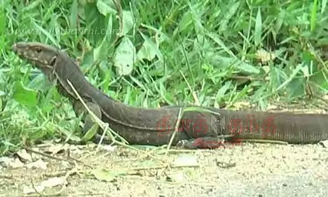 ராஜபாளையம் அய்யனார் கோவில் செல்லும் சாலையில் 6-வது மைல் குடிநீர் தேக்கம் அருகே சாலையை கடந்து உடும்பு சென்றது.