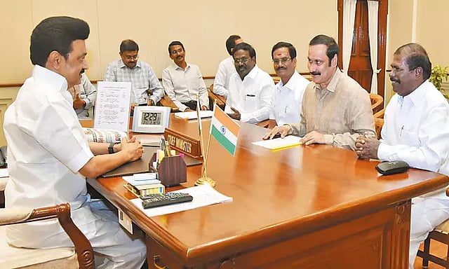 சென்னை தலைமைச் செயலகத்தில் முதல்-அமைச்சர் மு.க ஸ்டாலினை பா.ம.க. தலைவர் டாக்டர் அன்புமணி ராமதாஸ் நேற்று திடீரென சந்தித்து பேசினார்.