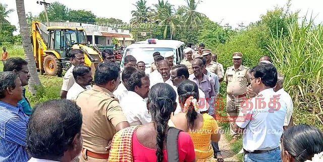 தண்டராம்பட்டு அருகே இறந்தவரின் உடலை விவசாய நிலம் வழியே எடுத்துச்செல்ல நில உரிமையாளர்கள் எதிர்ப்பு தெரிவித்ததால் இரு தரப்பினரிடையே வாக்குவாதம் ஏற்பட்டது. போலீசார் தலையிட்டு சமரசம் செய்தனர்.