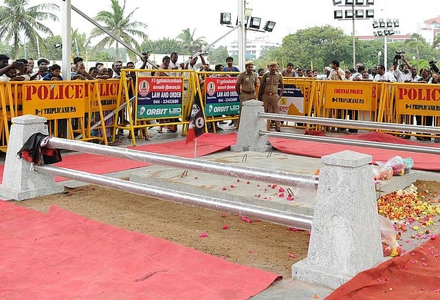 முன்னாள் முதல் அமைச்சரான மறைந்த ஜெயலலிதாவின் நினைவிடம் சென்னை மெரீனாவில் அமைக்கப்பட்டு உள்ளது. இங்கு பாதுகாப்பு பணியில் காவலர்கள் ஈடுபடுத்தப்பட்டு உள்ளனர்.