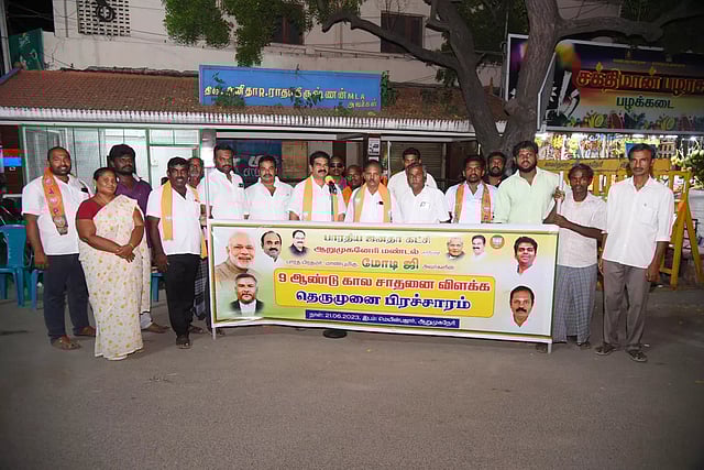 ஆறுமுகநேரி மயின் பஜாரில் பிரதமர் நரேந்திர மோடி தலைமையிலான மத்திய அரசின் 9 ஆண்டு சாதனை விளக்க தெருமுனை பிரசார கூட்டம் நடைபெற்றது. கூட்டத்திற்கு ஆறுமுகநேரி மண்டல் தலைவர் முருகேச பாண்டியன் தலைமை தாங்கினார். கூட்டத்தில் மாவட்ட பொதுச்செயலாளர் ஆர். சிவமுருக ஆதித்தன் முன்னிலை வகித்தார்.