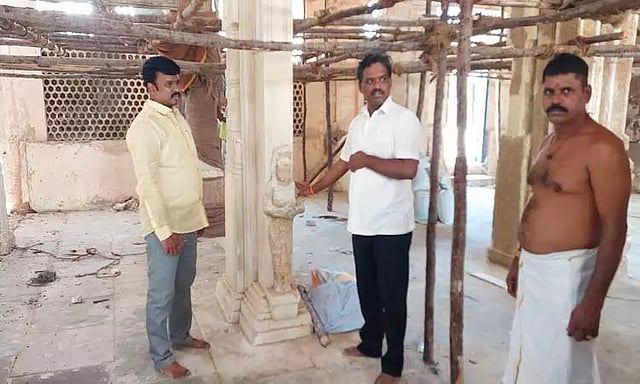 திருச்செந்தூர் சுப்பிரமணிய சுவாமி கோவிலில் ராஜகோபுர வாசலில் உள்ள திருப்பணி மண்டபம் பழமை மாறாமல் புனரமைப்பட்டு வருவதாக அறங்காவலர் குழுத்தலைவர் அருள்முருகன் தெரிவித்தார்.