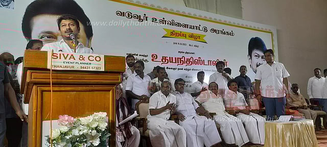 திருவாரூர் மாவட்டம் வடுவூரில் ரூ.7 கோடி மதிப்பில் கட்டப்பட்ட உள்விளையாட்டு அரங்க திறப்பு விழா நேற்று நடந்தது. விழாவில் அமைச்சர் உதயநிதி ஸ்டாலின் கலந்து கொண்டு உள்விளையாட்டு அரங்கை திறந்து வைத்து பேசினார்.