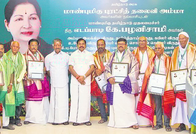விருதாளர்களுக்கு தலா ரூ.1 லட்சத்துக்கான காசோலை, ஒரு சவரன் தங்கப் பதக்கம், தகுதியுரை மற்றும் பொன்னாடை ஆகியவையும் வழங்கப்பட்டன.