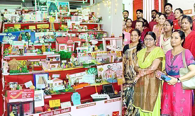 நவராத்திரி விழாவை முன்னிட்டு திருச்சி மத்திய மண்டல தபால்துறை சார்பில் அஞ்சல்துறையில் வழங்கப்படும் பல்வேறு சேவைகள் குறித்து பொதுமக்களுக்கு தெரியப்படுத்தும் வகையில் அஞ்சல் அட்டகாசம் என்ற தலைப்பில் விழிப்புணர்வு கொலு கண்காட்சி தலைமை தபால் நிலையத்தில் வைக்கப்பட்டுள்ளது. இந்த கண்காட்சியில் அஞ்சல்துறையில் அறிமுகப்படுத்தப்பட்ட சிறப்பு திட்டங்கள், வாடிக்கையாளர்களுக்கு வழங்கப்படும் சேவைகள், கடந்த காலங்களில் அச்சிடப்பட்ட தபால் தலைகள், தபால்கார்டு உள்ளிட்ட பல்வேறு அம்சங்கள் இடம் பெற்றுள்ளன. இந்த கொலுவை மத்திய மண்டல அஞ்சல்துறை தலைவர் நிர்மலாதேவி தொடங்கி வைத்தார். வருகிற 24-ந் தேதி வரை இந்த கொலு பொதுமக்களின் பார்வைக்காக வைக்கப்பட்டு இருக்கும். 12 மண்டலங்களுக்கு இடையே தேர்ந்தெடுக்கப்படும் சிறந்த கொலுவுக்கு விருது வழங்கப்பட உள்ளது. பொதுமக்கள் தலைமை தபால் நிலையத்தில் வைக்கப்பட்டுள்ள கொலுவை பார்வையிட்டு தபால்துறையின் கடந்த கால, நிகழ்கால, எதிர்கால சேவைகள் குறித்து அறிந்து கொள்ள வேண்டும் என்று தAwareness killing exhibition on postal services at Head Post Officeபால்துறை உதவி இயக்குனர் கலைவாணி வேண்டுகோள் விடுத்துள்ளார்.