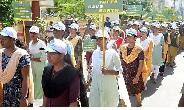 பின்னர் கலெக்டர் முகாம் அலுவலகத்தில் இருந்து தொடங்கிய ஊர்வலத்தில் கல்லூரி மாணவ-மாணவிகள் கலந்துகொண்டு மரம் வளர்ப்பின் அவசியம் குறித்த விழிப்புணர்வு வாசகங்களை ஏந்தியபடியும், மரம் வளர்ப்போம், மண் வளத்தை காப்போம் என்று கோஷமிட்டபடியும் சென்றனர். நகரின் முக்கிய வீதிகள் வழியாக சென்ற இந்த ஊர்வலம் பஸ் நிலையத்தில் முடிவடைந்தது. இதில் திண்டுக்கல் உதவி வனப்பாதுகாவலர் ஸ்ரீனிவாசன், தன்னார்வலர்கள் உள்பட பலர் பங்கேற்றனர்.