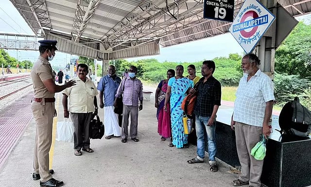 உடுமலை வழியாக சென்னை, மதுரை, கோவை, திருச்செந்தூர், பாலக்காடு, திருவனந்தபுரம் உள்பட பல்வேறு வெளியூர்களுக்கு ரெயில்கள் இயக்கப்பட்டு வருகின்றன. இந்த நிலையில் பழனி ரயில்வே போலீஸ் இன்ஸ்பெக்டர் தூயமணி வெள்ளைச்சாமி அறிவுறுத்தல்படி போலீஸ்காரர் ரகு உடுமலை ரெயில் நிலையத்திற்கு வந்திருந்தார்.
