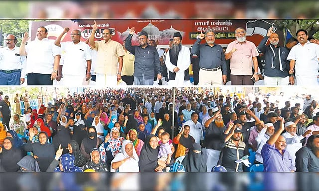 சென்னை வள்ளுவர் கோட்டம் அருகே த.மு.மு.க. தலைவர் ஜவாஹிருல்லா எம்.எல்.ஏ. தலைமையில் "வழிபாட்டுரிமைப் பாதுகாப்பு" என்ற பெயரில் நேற்று ஆர்ப்பாட்டம் நடந்தது. ஒவ்வொரு ஆண்டும் டிசம்பர் 6-ந்தேதி பாபர் மசூதி இடிப்பு தினம் கடைபிடிக்கப்பட்டு வருகிறது. இதையடுத்து சென்னையில் த.மு.மு.க சார்பில் இந்தியாவின் அரசியல் சாசன சட்டம் அனைவருக்கும் அளித்துள்ள உரிமைகளைப் பாதுகாக்க வேண்டும் என்ற கோரிக்கையை வலியுறுத்தி நடந்த ஆர்ப்பாட்டத்தில் அடையாறு பள்ளிவாசல் தலைமை இமாம் சதீதுத்தீன் பாகவி, தமிழ்நாடு சிறுபான்மையினர் நல ஆணையத் தலைவர் பீட்டர் அல்போன்ஸ், மார்க்சிஸ்ட் கம்யூனிஸ்டு கட்சி மாநில செயலாளர் பாலகிருஷ்ணன், விடுதலை சிறுத்தைகள் கட்சி பொதுச்செயலாளர் சிந்தனை செல்வன் எம்.எல்.ஏ. மற்றும் கிருஸ்தவ நல்லெண்ண இயக்க ஒருங்கிணைப்பாளர் இனிகோ இருதயராஜ் உள்பட பலர் கலந்து கொண்டனர்.