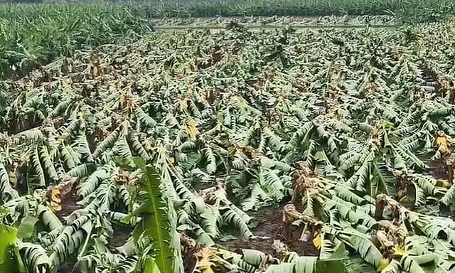 இதனிடையே, நெல்லை மாவட்டத்தின் சேரன்மகாதேவி, மேலச்செவல், பிராஞ்சேரி, சொக்கலிங்கபுரம், கோபாலசமுத்திரம் உள்ளிட்ட பகுதிகளில் நூற்றுக்கணக்கான ஏக்கர்களில் வாழை மரங்கள் பயிரிடப்பட்டு அறுவடைக்கு தயாராக இருந்தன.