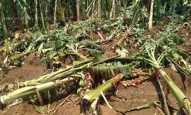 அதாவது அந்த ஊரைச் சேர்ந்த ஆறுமுக பாண்டியன், வையாழிகண்ணு, தங்கதுரை, கருத்தபாண்டி ஆகியோர் பயிர் செய்திருந்த சுமார் 6,000-க்கும் மேற்பட்ட வாழைகள் நாசமானது. பாதிக்கப்பட்ட வாழைகளுக்கு அரசு இழப்பீட்டு தொகை வழங்க வேண்டும் என்று அவர்கள் கோரிக்கை விடுத்துள்ளனர்.