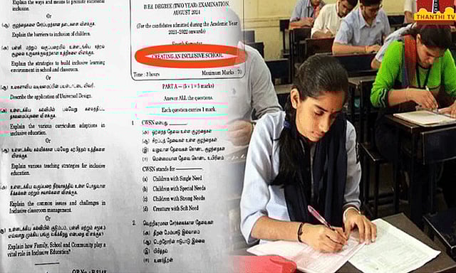 இந்த நிலையில், இன்று நடைபெறவிருந்த "creating an inclusive school" என்ற பாடத்துக்கான வினாத்தாள் முன்கூட்டியே வெளியாகி அதிர்ச்சியை ஏற்படுத்தியுள்ளது. இந்த விவகாரம் உயர்கல்வித்துறை அதிகாரிகளுக்கு சென்ற நிலையில், முன்கூட்டியே வெளியான வினாத்தாளை உயர்கல்வித்துறை ரத்துசெய்துள்ளது. இன்று காலை 10 மணிக்கு தேர்வு துவங்கும் முன்பாக இணையதளம் மூலம் வேறு வினாத்தாள் அனுப்பப்பட்டு தேர்வுகள் நடத்தப்படும் எனவும் தெரிவிக்கப்பட்டுள்ளது.