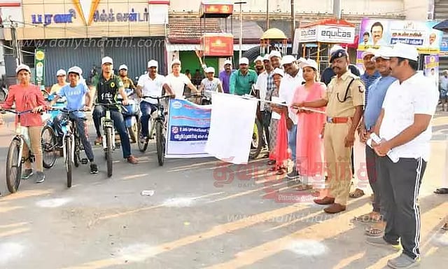திருவண்ணாமலை காந்திசிலை அருகே உலக புகையிலை ஒழிப்பு தினத்தை முன்னிட்டு விழிப்புணர்வு சைக்கிள் ஊர்வலத்தை போலீஸ் சூப்பிரண்டு கார்த்திகேயன் தொடங்கி வைத்தார். நிகழ்ச்சியில் மாவட்ட வருவாய் அலுவலர் பிரியதர்ஷினி மற்றும் பலர் கலந்துகொண்டனர்.