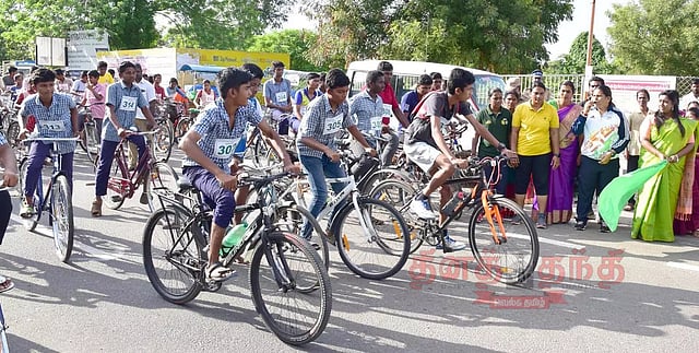 நாமக்கல் கலெக்டர்அலுவலகம் முன்பு இருந்து இந்த போட்டியை கலெக்டர் ஸ்ரேயாசிங் கொடி அசைத்து தொடங்கி வைத்தார். மாவட்ட விளையாட்டு அலுவலர் கோகிலா முன்னிலை வகித்தார். இந்த போட்டியில் வெற்றி பெறும் அணிகளுக்கு முதல் பரிசு ரூ.5 ஆயிரம், இரண்டாம் பரிசு ரூ.3 ஆயிரம், மூன்றாம் பரிசு ரூ.2 ஆயிரம் மற்றும் 4 முதல் 10 இடங்களில் வருபவர்களுக்கு ரூ.250 பரிசு காசோலையும் மற்றும் முதல் 10 இடங்கள் பெறுபவர்களுக்கு சான்றிதழும் இன்று (வெள்ளிக்கிழமை) கலெக்டர் அலுவலக கூட்டரங்கில் வழங்கப்படும் என அதிகாரிகள் தெரிவித்தனர்.