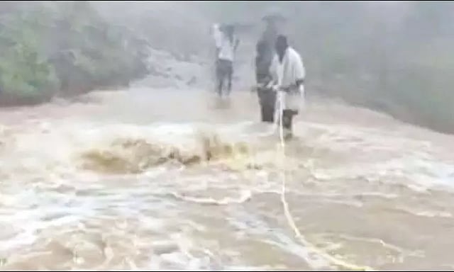 கனமழை காரணமாக ஆற்றில் திடீர் வெள்ளப்பெருக்கு ஏற்பட்டுள்ளது. கரைபுரண்டு ஓடிய காட்டாற்று வெள்ளத்தை கயிறு கட்டி மலைக்கிராம மக்கள் கடந்து செல்கின்றனர்.