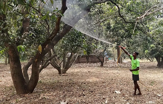 தற்போது பழனி பகுதியில் உள்ள தோட்டங்களில் மாமரங்கள் பூக்கள் பூத்துக்குலுங்குகின்றன. இவை பிஞ்சு பிடித்து மே மாத தொடக்கத்தில் காய்கள் அறுவடையாகும். இந்தநிலையில் பல இடங்களில் மாமரங்களில் பூச்சி, புழு தாக்குதல் இருந்து வருகிறது. இதையடுத்து விவசாயிகள் மாமரங்களுக்கு மருந்து தெளிக்கும் பணியில் ஈடுபட்டு வருகின்றனர்.